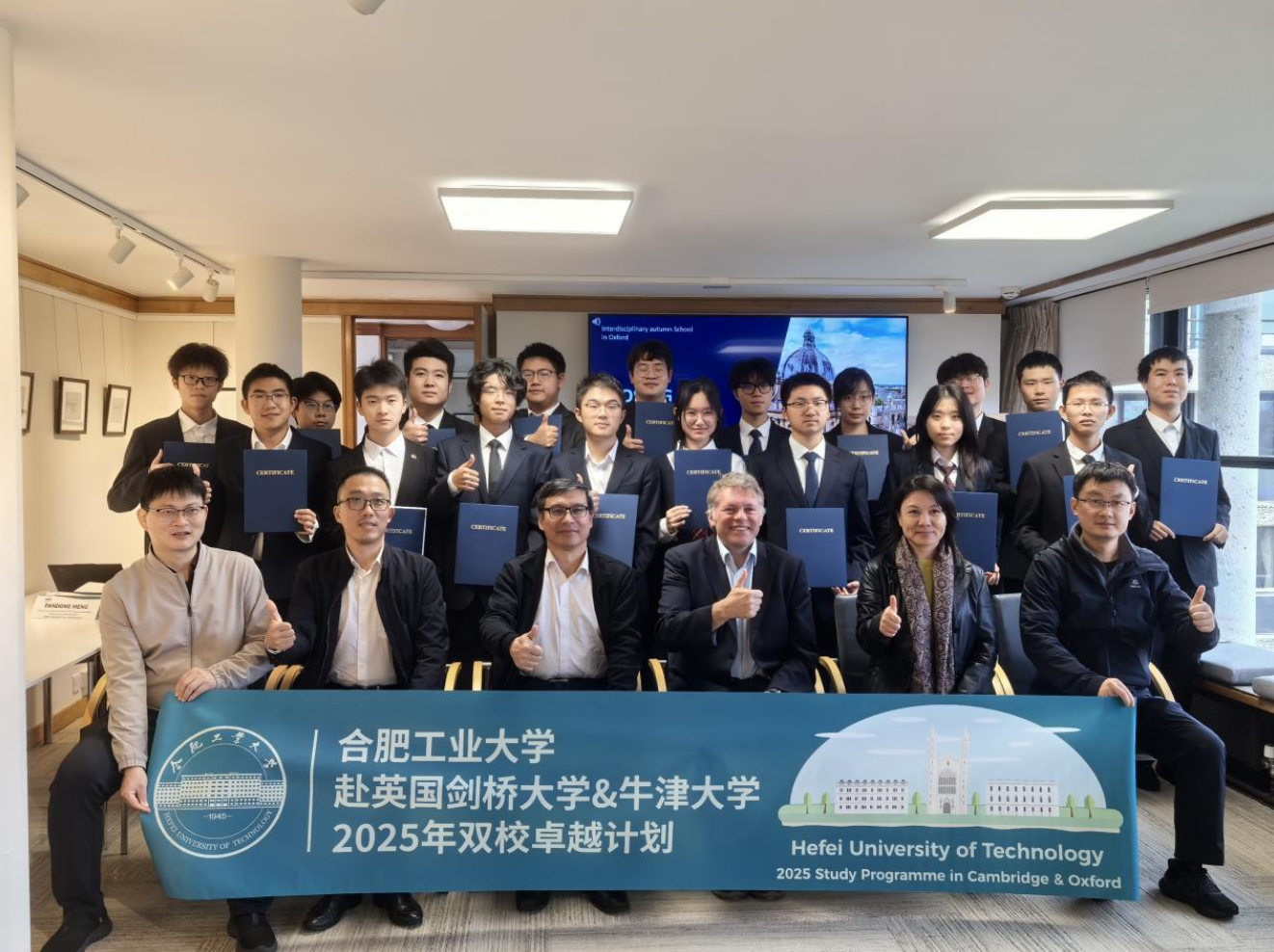 近期,合肥工业大学赴英国剑桥大学、牛津大学2025年“双校卓越计划”学术交流活动圆满结束,学校选派的19名2025级创新实验班拔尖本科新生顺利完成各项学术交流任务,凯旋归来。
